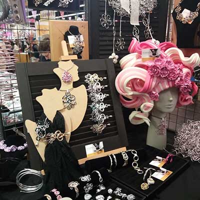 Naar de beurs. Het bedenken van nieuwe toepassingen van het aluminiumdraad hebben ertoe geleidt dat ik demonstreer op beurzen in binnen en buitenland.Ook het ontwikkelen van hulpmiddelen zoals een ringmandrel om ringen op maat te maken en het schrijven van boeken...