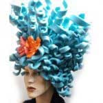 Foampruik "Curlyblue" is verkrijgbaar in elke gewenste kleurcombinatie. Om te bestellen hebben we de hoofdmaat nodig, gemeten over het voorhoofd boven de oren over het dikste deel van het achterhoofd.
